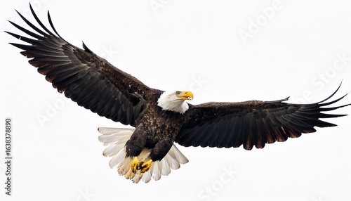 Fototapeta premium majestic bald eagle in flight wings spread wide against a white background