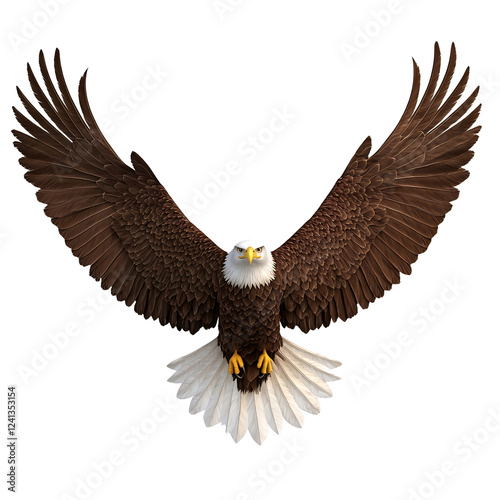 © ASyarif, Fototapeta premium Majestic bald eagle in flight, wings spread wide, against black background; wildlife, nature, freedom isolated on transparent or white background. Generative ai