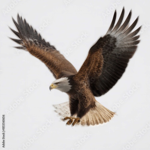 © Sadaf, Obraz premium Majestic Bald Eagle in Flight with Outstretched Wings Soaring Through Clear Sky