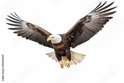 © Naba, Naklejka premium Majestic bald eagle in flight with wings spread wide