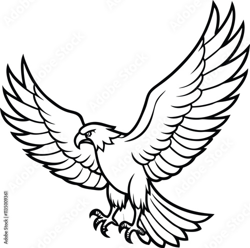 Obraz premium Majestic Bald Eagle Line Art Wings Spread, Soaring High