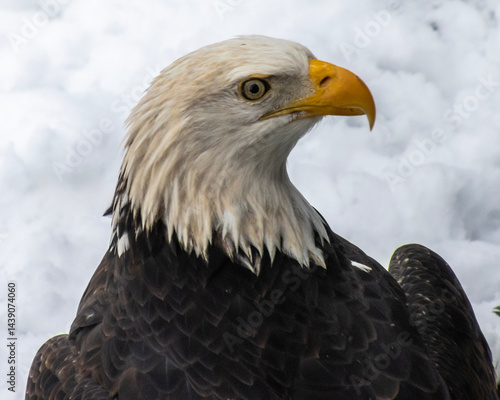 Obraz premium Majestic bald eagle perched against a snowy backdrop captures attention in...