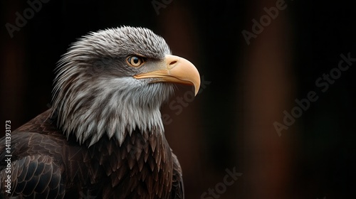 Fototapeta premium Majestic bald eagle portrait against dark forest background