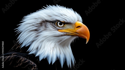 © ACE STEEL D, Fototapeta premium Majestic Bald Eagle Profile Against Black Background