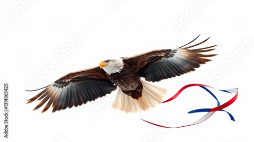 Fototapeta premium majestic bald eagle, refined features, soars gracefully against a bright white background.