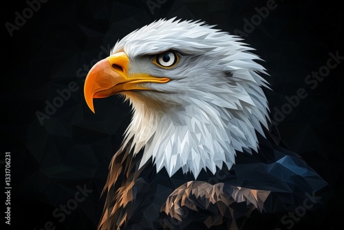 Fototapeta premium Majestic bald eagle showcasing detailed feathers and piercing gaze against a dark background in a creative artistic representation
