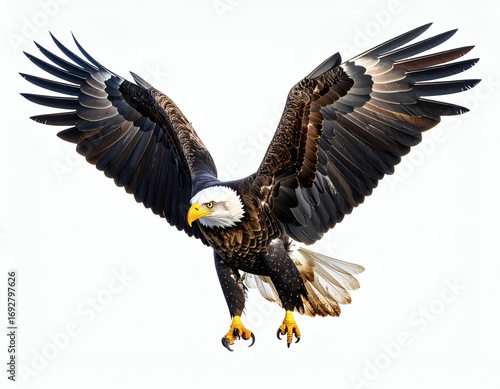 © Boedie, Fototapeta premium Majestic Bald Eagle Soaring Against White Backdrop A Symbol of Freedom and Wildlife