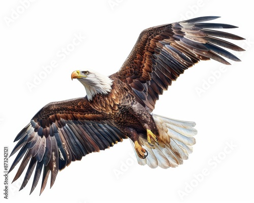 Naklejka premium Majestic bald eagle soaring gracefully with wings fully spread