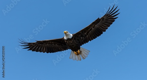 © Penggila, Obraz premium Majestic Bald Eagle Soaring in a Blue Sky