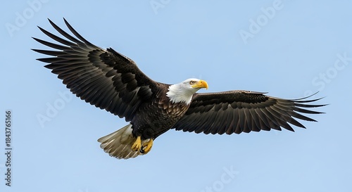 © bhora, Fototapeta premium Majestic Bald Eagle Soaring Through a Clear Blue Sky.