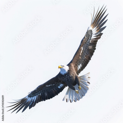 © Jeeraphat, Obraz premium majestic bald eagle soaring through blue sky