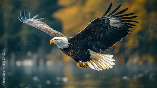 © DWI, Fototapeta premium Majestic bald eagle soaring through the air.