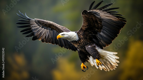 © DWI, Fototapeta premium Majestic bald eagle soaring through the air.
