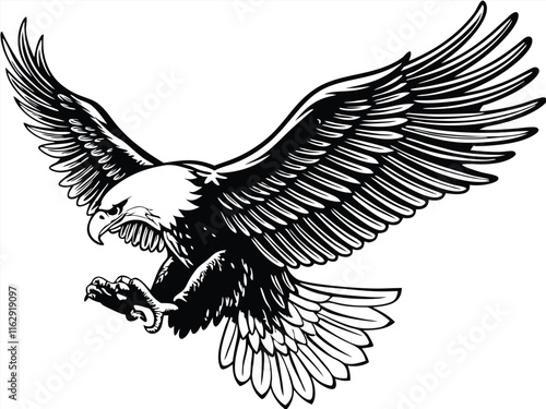© Abubakar, Fototapeta premium Majestic Bald Eagle Soaring, Wings Spread, Black and White