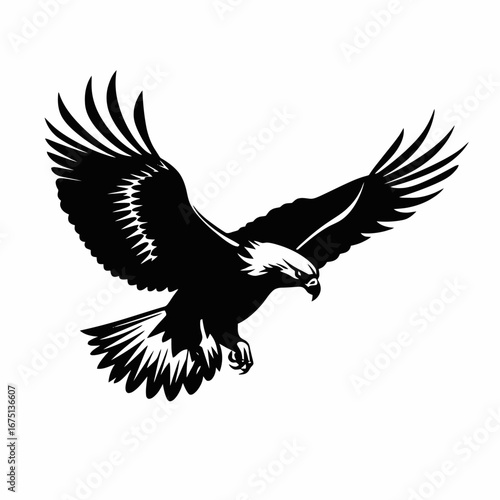 Obraz premium Majestic bald eagle soaring, wings spread in bold black graphic silhouette
