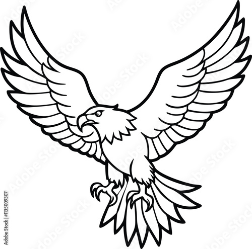 Obraz premium Majestic Bald Eagle Soaring, Wings Spread Wide, Line Art Design