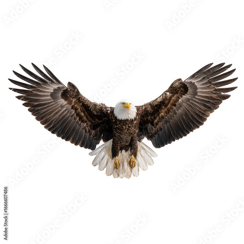 Fototapeta premium Majestic bald eagle soaring with wings fully extended isolated on transparent...