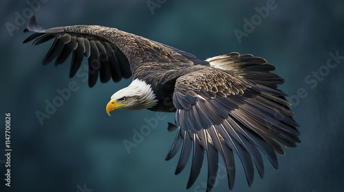 © THUA, Fototapeta premium Majestic bald eagle soaring with wings spread wide in sky