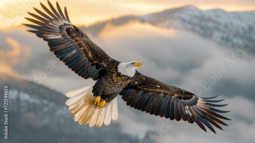 © Adobe Contributor, Fototapeta premium majestic bald eagle soars above the snowy mountains