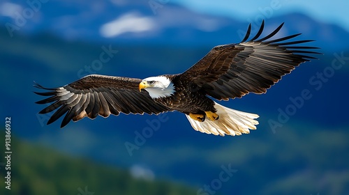 Naklejka premium Majestic bald eagle soars on powerful wings, a breathtaking spectacle of...