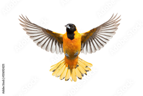 Obraz premium Majestic Baltimore Oriole in Flight Vibrant Wings Spread Wide