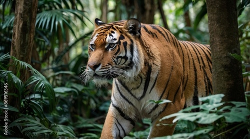 © YENI, Fototapeta premium Majestic Bengal tiger fierce and wild hides in tropical