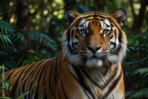 © Amila Vector, Fototapeta premium Majestic Bengal Tiger Prowling Through Lush Jungle Foliage