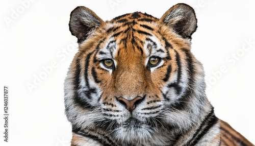 © netsay, Fototapeta premium Majestic Bengal Tiger Strikes a Pose Against a White Backdrop, Showcasing Its Power and Regality in a Captivating CloseUp