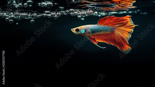 Fototapeta premium Majestic Betta Fish Swims Gracefully In Clean Water. Captivating Colors And Tranquil Movement Create A Serene And Captivating Underwater Scene.