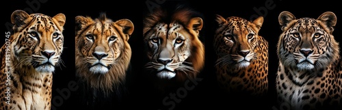 © nDuk_geNduk, Fototapeta premium Majestic Big Cats Dark Background.