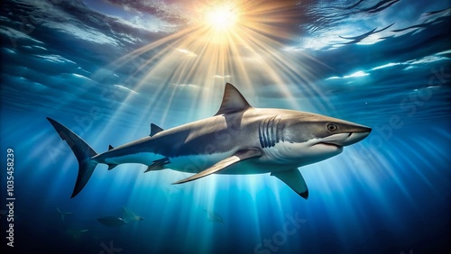 Obraz premium Majestic Big Shark in Deep Blue Water - Perfect for Ocean Wildlife Themes
