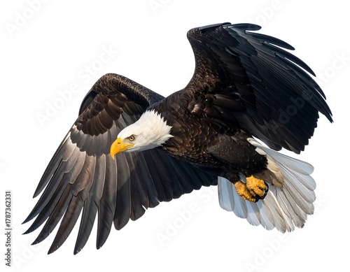 Obraz premium Majestic bird of prey, soaring against a clean white backdrop