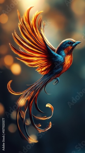 © Tikic, Obraz premium Majestic Bird with Flowing Feathers