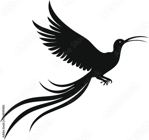 © mdsohrab, Fototapeta premium Majestic Birds Silhouette Vector EPS Illustration of a Resplendent Flying Bird with Long Tail, Perfect for Design Projects