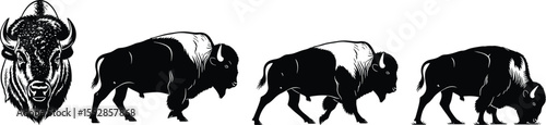 © AssetBud, Fototapeta premium Majestic bison in black and white illustration