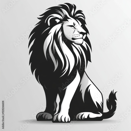 © lestari, Fototapeta premium Majestic black and white lion sitting.