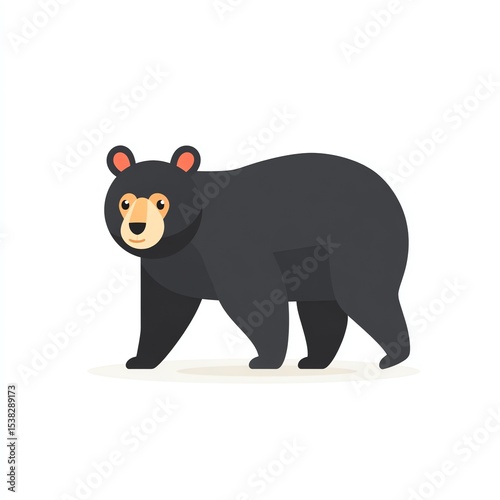 Fototapeta premium Majestic Black Bear Strolling Serene, Minimalist Illustration of Wildlife in...