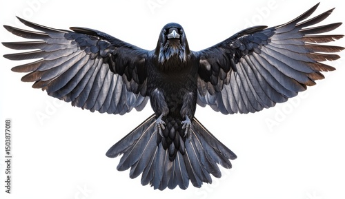 © Wicha, Obraz premium Majestic Black Bird in Flight Against White Background