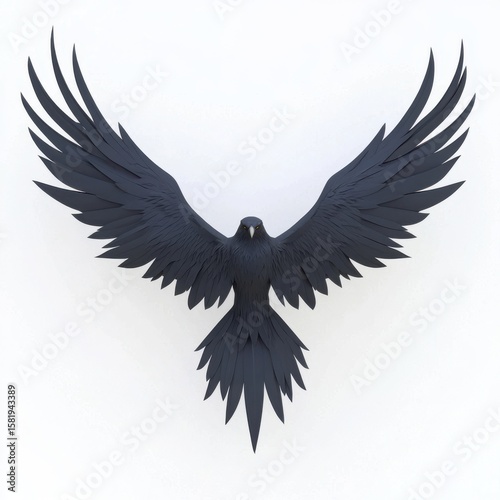 © Rungtiwa, Obraz premium Majestic Black Bird with Outstretched Wings on a White Background