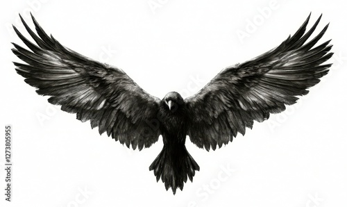 © Maryanto, Obraz premium Majestic black bird with outstretched wings soaring against a plain background, symbolizing freedom
