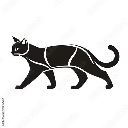 © Priyanut, Obraz premium Majestic Black Cat: A Silhouetted Stroll
