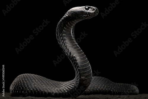 Fototapeta premium Majestic Black Cobra: Dramatic Monochrome Reptile Portrait