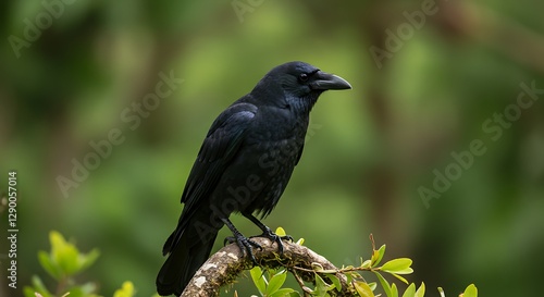 © Mtaufiq, Fototapeta premium Majestic Black Crow Perched on Branch