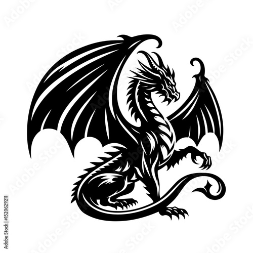 © dropideas, Fototapeta premium Majestic Black Dragon: A Tribal Fantasy Creature Illustration