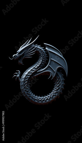 © Deepak, Obraz premium Majestic Black Dragon on Dark Background