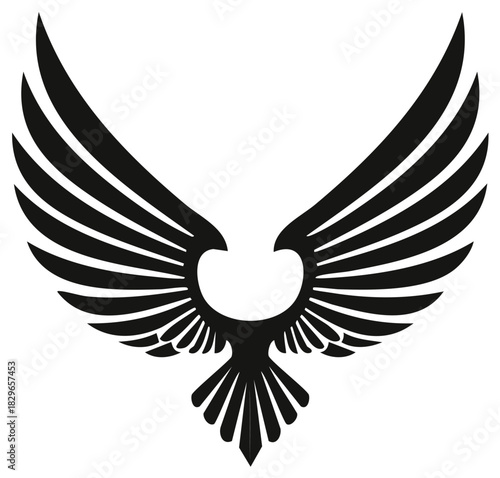 Fototapeta premium Majestic black eagle or falcon with spread wings flying symbol