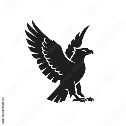 © Veronica, Obraz premium Majestic Black Eagle Silhouette with Wings Spread Wide
