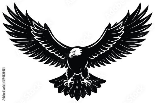 Obraz premium Majestic Black Eagle Silhouette with Wings Spread Wide on a White Background