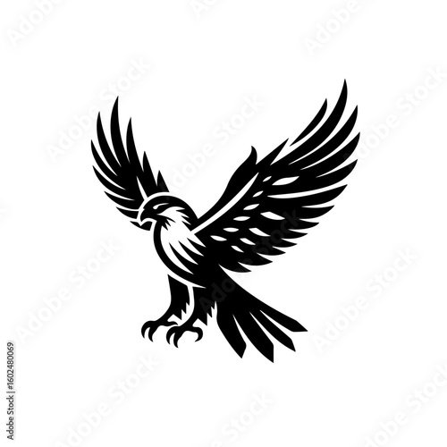 © md, Fototapeta premium Majestic Black Falcon in Flight Silhouette.