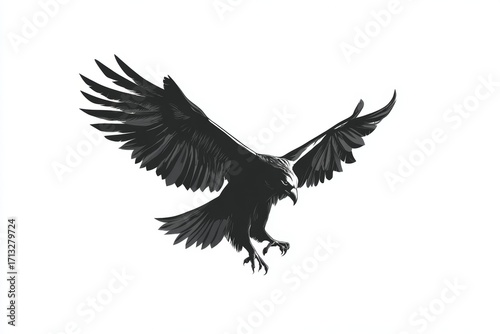 © Space Priest, Obraz premium Majestic black raven in flight with wings outstretched on white background